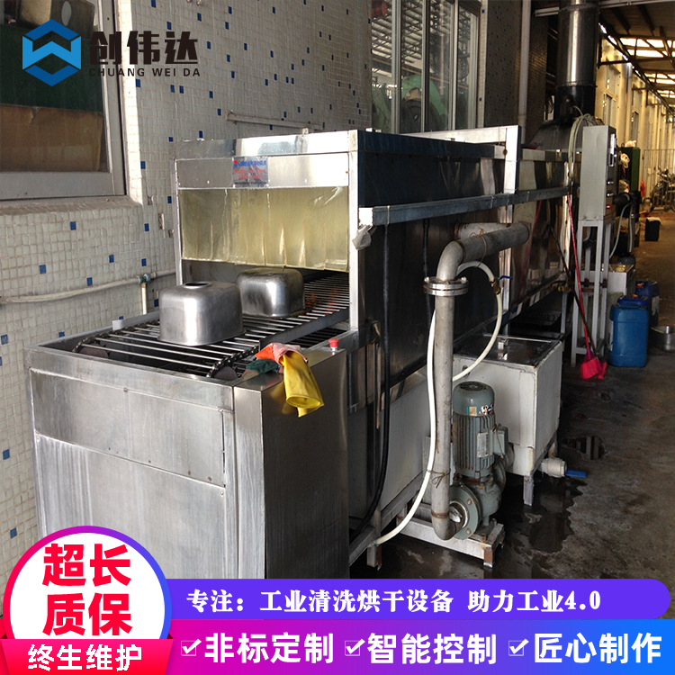 CHWD-7000TP型不锈钢厨具餐具除油清洗机 拉伸洗手盆自动360度喷淋清洗烘干线,是一种采用网带传动输送带输送工件,具有清洗液喷洗、清水喷淋漂洗、风机吹水、热风吹干等功能的新颖连续式清洗设备。主要适用于各厂家清洗各种不同型号工件的油、污、垢等。该机具有工位多,功能全,结构合理,操作方便,清洗效果好,对于大批量拉伸件的清洗,改善劳动环境,提高清洗和吹干质量,具有重要的意义。